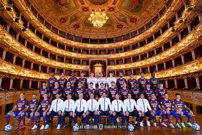 Il Teatro Municipale "Romolo Valli" fa da sfondo alla foto ufficiale della Reggiana 2024/2025