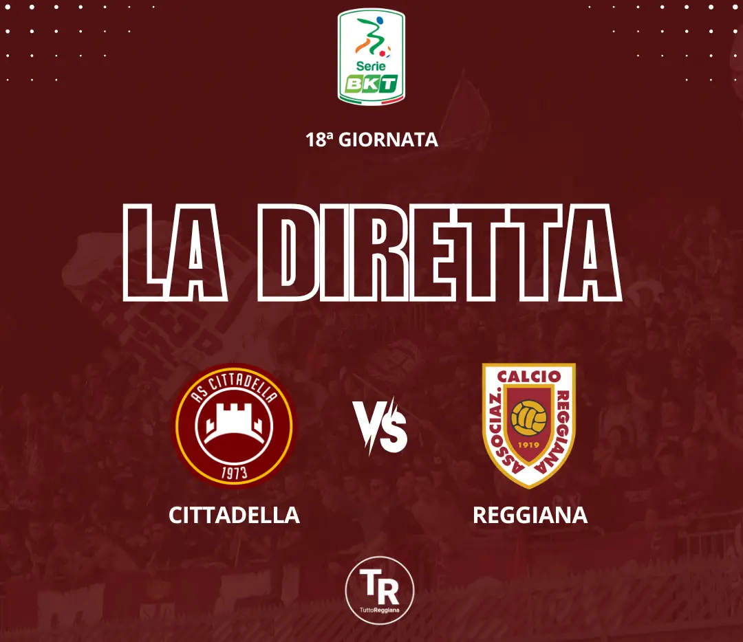 98' FINE PARTITA. Dopo 11 mesi il Cittadella torna a vincere in casa contro una brutta Reggiana che ha dato segni di vita solo dopo il secondo gol dei veneti. Vano il gol di Gondo nel finale, Rabbi chiude la partita in pieno recupero. Non sarà un bel Natale per la Regia…