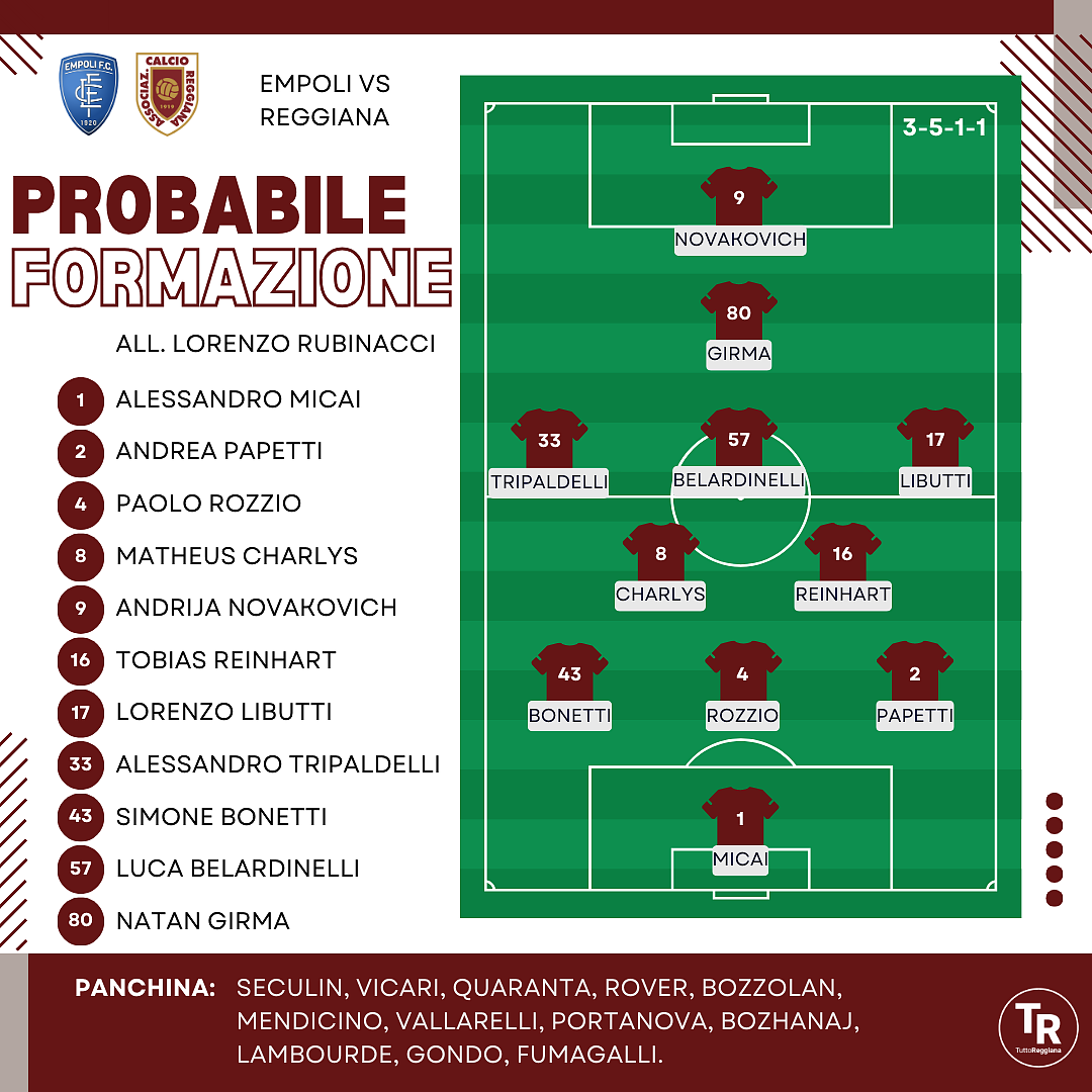 Le probabili formazioni di Empoli-Reggiana