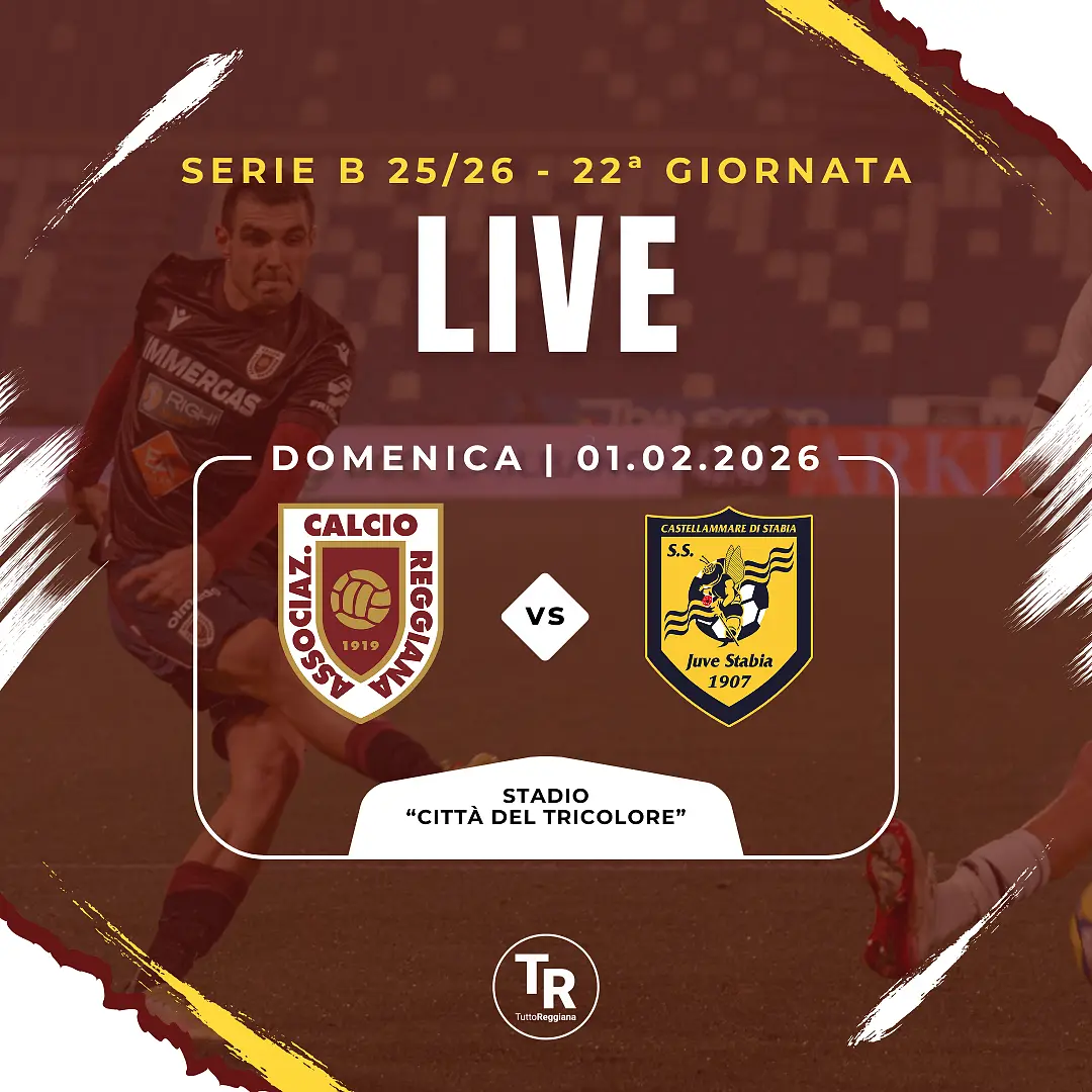 Home / Primo Piano Reggiana-Juve Stabia LIVE dalle ore 15:00 La diretta scritta della ventiduesima giornata del campionato di Serie B 2025/26 tra i granata di Dionigi e i gialloblù di Abate 01 February 2026, 12:45 Twitter Facebook Whatsapp Telegram Email La diretta avrà inizio verso le ore 14:45 Serie B, 22ª giornata. Sorpasso del Venezia sul Frosinone, la Sampdoria vince il derby con lo Spezia UFFICIALE – Alessandro Micai è granata: rinforzo tra i pali per la Reggiana 💬 Commenti Twitter Facebook Whatsapp Telegram Email Condividi Commenta