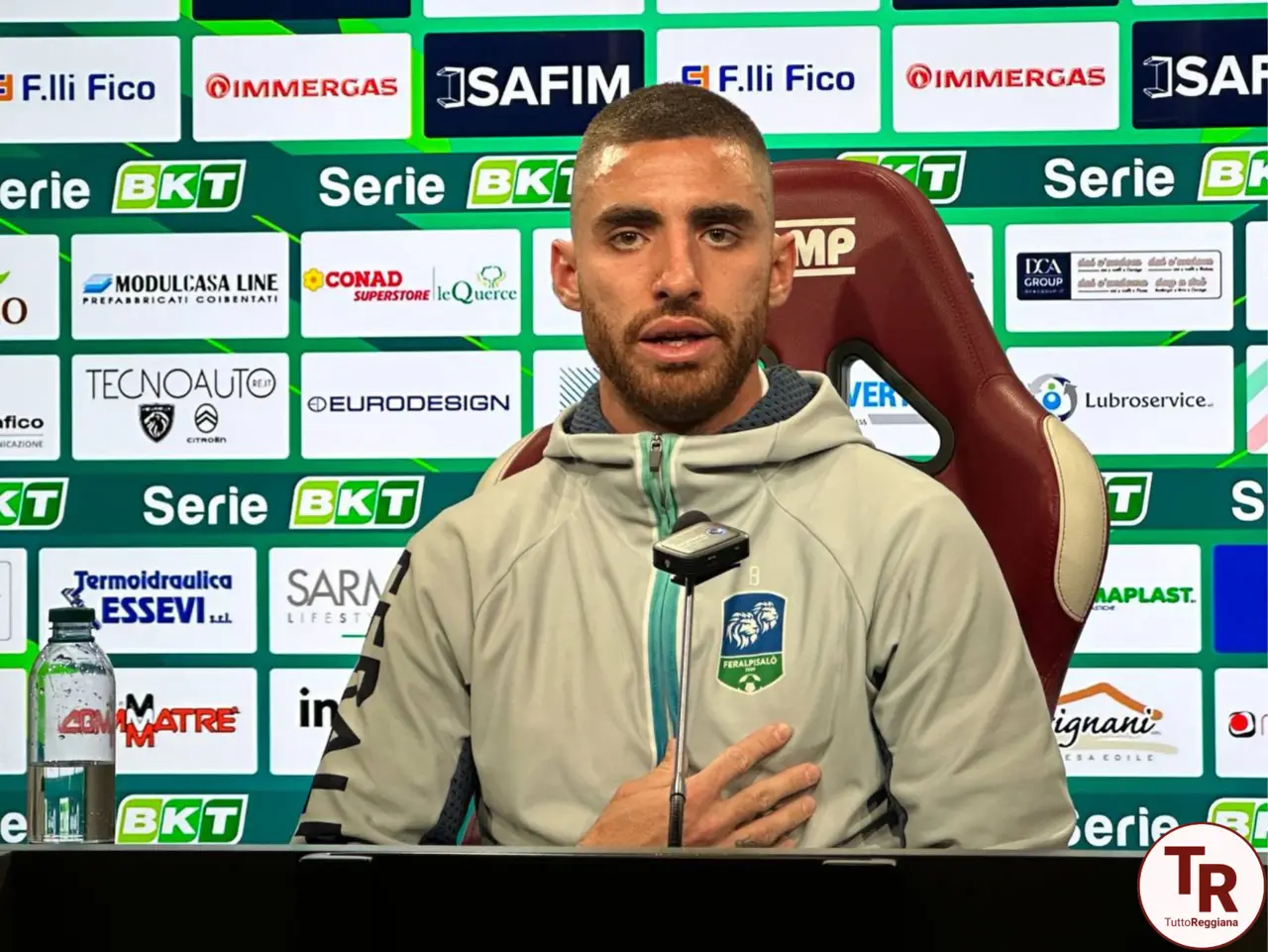 Minuto 48 del primo tempo, la FeralpiSalò è già in dieci uomini mentre l'attaccante croato Karlo Butic, visibilmente alterato, si vede indirizzare dal direttore di gara il secondo cartellino giallo. A dare la sua versione dei fatti è il capitano verdeblù Davide Balestrero direttamente dalla sala stampa del “Città del Tricolore”.