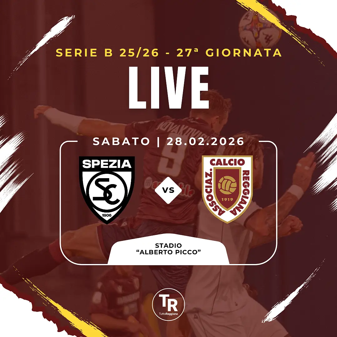 Home / Primo Piano Spezia-Reggiana LIVE dalle ore 17:15 La diretta scritta della ventisettesima giornata del campionato di Serie B 2025/26 tra i bianconeri di Donadoni e i granata di Rubinacci 28 February 2026, 14:30 Twitter Facebook Whatsapp Telegram Email La diretta avrà inizio verso le ore 17:00 Le probabili formazioni di Spezia-Reggiana. Si fermano Vicari, Belardinelli e Lambourde 💬 Commenti Twitter Facebook Whatsapp Telegram Email Condividi Commenta