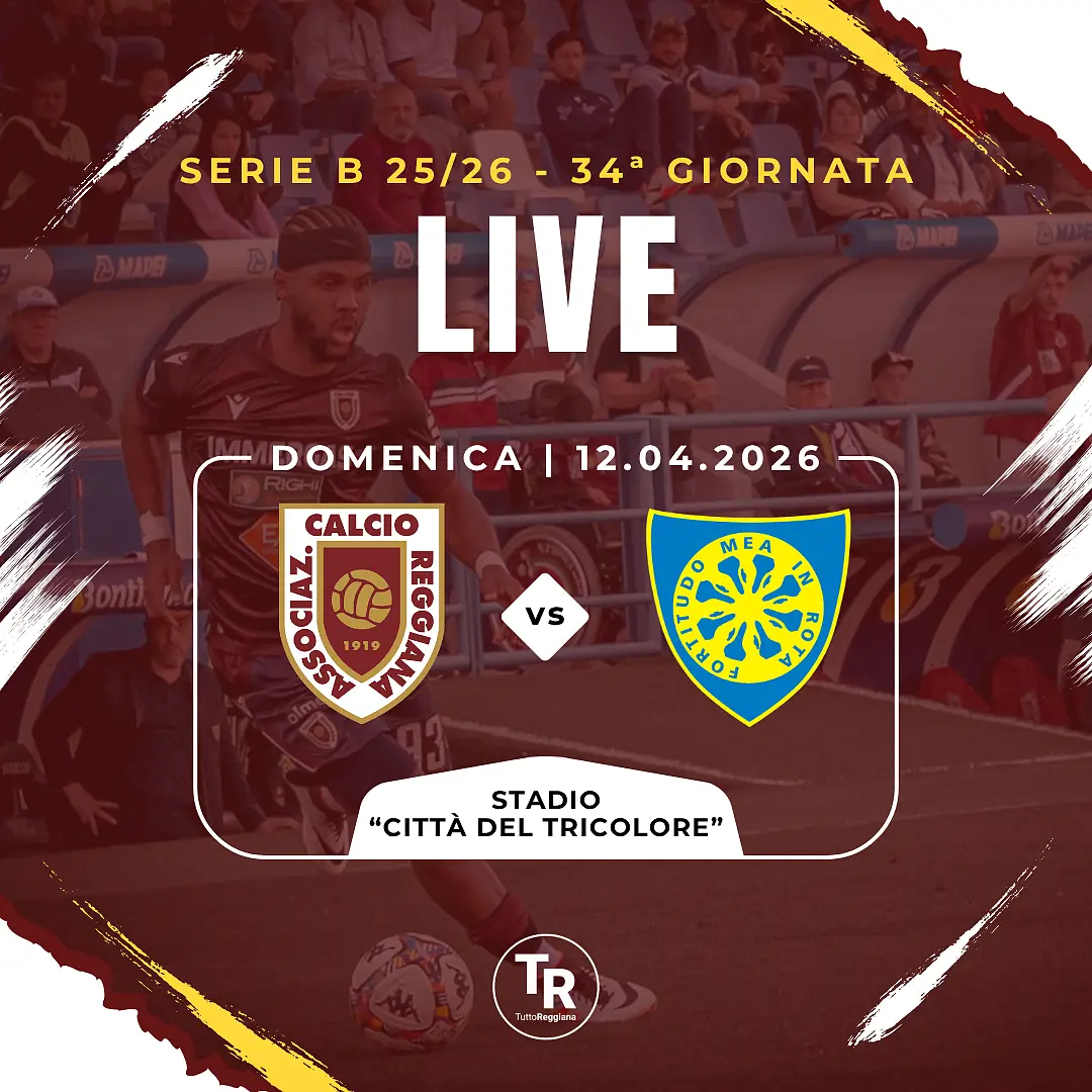 Home / Primo Piano Reggiana-Carrarese LIVE dalle ore 19:30 La diretta scritta della trentaquattresima giornata del campionato di Serie B 2025/26 tra i granata di Bisoli e i giallazzurri di Calabro 12 April 2026, 16:00 Twitter Facebook Whatsapp Telegram Email La diretta avrà inizio verso le ore 19:15 Serie B, 34ª giornata. Pescara e Bari sconfitti da Sampdoria e Monza, il Padova supera l'Empoli 💬 Commenti Twitter Facebook Whatsapp Telegram Email Condividi Commenta